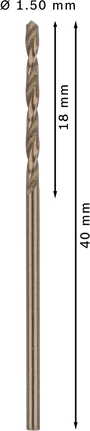 Broca PRO Stainless Steel HSS-Co, 1,5 x 18 x 40 mm
