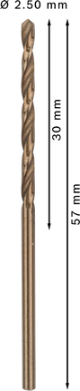 Broca PRO Stainless Steel HSS-Co, 2,5 x 30 x 57 mm