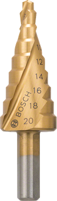 - La broca escalonada de HSS TiN perfora con suavidad en varios diámetros con una sola broca