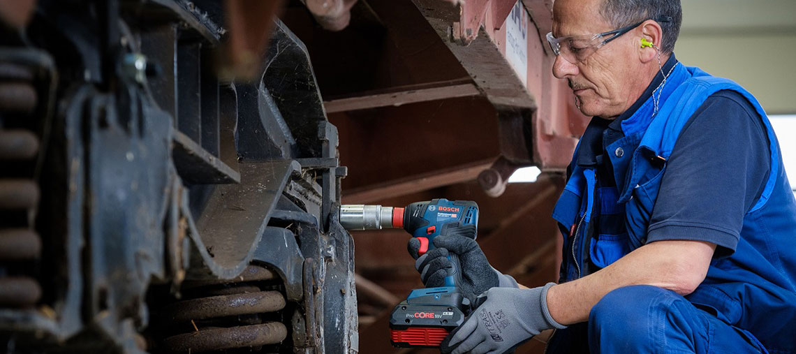 Para o transporte de mercadorias a granel, tudo circula pela via-férrea a intervalos de minutos. Para garantir que nenhum dos 200 comboios de mercadorias que circulam diariamente nos carris se avarie, a "Hamburg Port Authority" tem uma oficina. Segundo Sebastian Weiß, diretor adjunto da oficina, "realizamos trabalhos de revisão e manutenção, bem como reparações a pedido. A troca de rodas em vagões de mercadorias e vagões de contentores é uma das nossas principais encomendas. E trabalhamos tanto na oficina como na via-férrea, e na maioria das vezes tem de ser rápido. A via-férrea do porto funciona como um relógio", sublinha. Para assegurar flexibilidade e mobilidade na oficina e na via-férrea, as ferramentas profissionais sem fio são particularmente importantes.