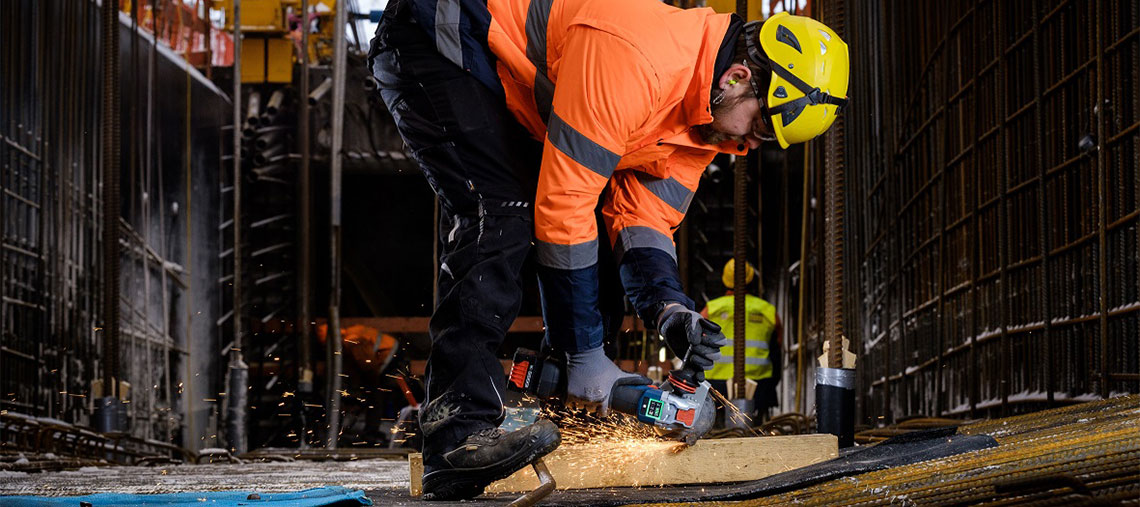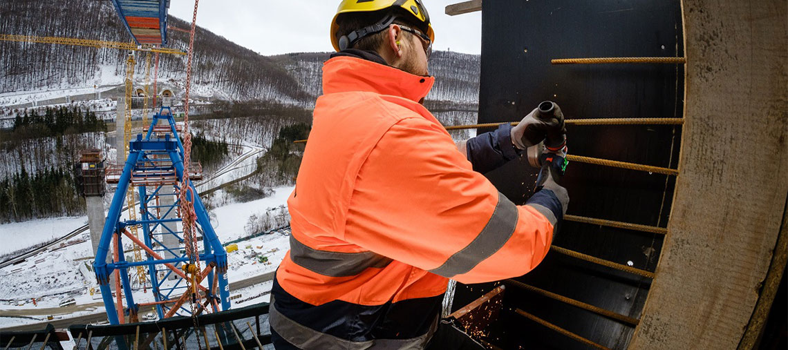 Martin Mayer, encarregado da obra que representa no terreno a equipa da Max Bögl, explica que “de momento estamos a trabalhar na armadura”, que inclui por exemplo uma tarefa diária de assentar, rapidamente, mais de 160 toneladas de metal para que o betão possa ser vazado. “A armadura é muito estreita. Se as posições não estiverem corretas, o metal deve ser cortado com rebarbadoras. Portanto, a equipa deve ter as ferramentas e os acessórios à mão. Se falta algum destes elementos, há um longo caminho a percorrer até ao armazém de ferramentas. Isto custa-nos tempo. Estamos sempre à procura de soluções para alcançar os objetivos”, explica o encarregado que testou a rebarbadora profissional sem fio GWX 18V-10 SC da Bosch com sistema X-LOCK.