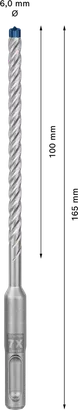 رأس المثقاب المطرقي EXPERT SDS plus-7X مقاس 6 × 100 × 165 مم بعدد 30