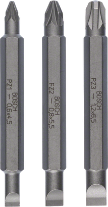 | 2 607 001 747 | S1,2x6,5، S0,6x4,5، S0,8x5,5 | PZ1، PZ2، PZ3ً | 60 | محتويات الطقم: 1 لقمة مفك براغي مزدوجة الأطراف PZ1-SL0.6 x 4.5 1 لقمة مفك براغي مزدوجة الأطراف PZ2-SL0.8 x 5.5 1 لقمة مفك براغي مزدوجة الأطراف PZ3-SL1.2 x 6.5 | 3 قطعة | ابحث عن موزع محلي |