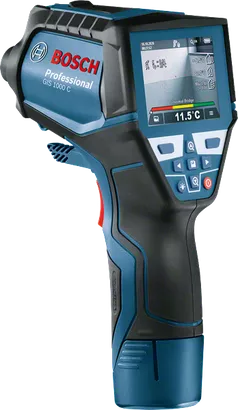 The thermo detector GIS 1000 C Professional is the swift solution for precise reading and documentation of temperatures and relative humidity. While recording measurements, the device’s integrated camera conveniently captures images for instant display with the relevant values. Detailed data is quickly documented and can be shared to remote devices thanks to the Bosch ThermalOn app via Bluetooth® connection. The thermo detector delivers a temperature recording, offering professionals five different modes for complex surface and contact temperatures (with integrated K-type functionality), dew point and thermal bridge calculations, and a user mode for custom values.