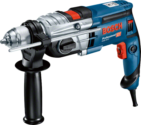 The GSB 20-2 Professional is the all-round performing 2-gear corded impact drill with KickBack Control. Its powerful 850 W motor enables fast work progress. User protection is increased by its intelligent KickBack Control feature. Additionally, the impact drill is designed with a sturdy metal gear housing that ensures a long tool lifetime.