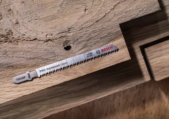 We made the PRO Hardwood clean T101AIF Jigsaw Blade from Bi-Metal: it has a high-speed steel (HSS) tooth strip bonded with a high-carbon steel (HCS) body to ensure you can tackle hardwood with ease. The blade has a tapered shape and fine-pitched teeth for clean, snag-free cuts. Use it to cut solid hardwood between 2 and 30 mm thick.