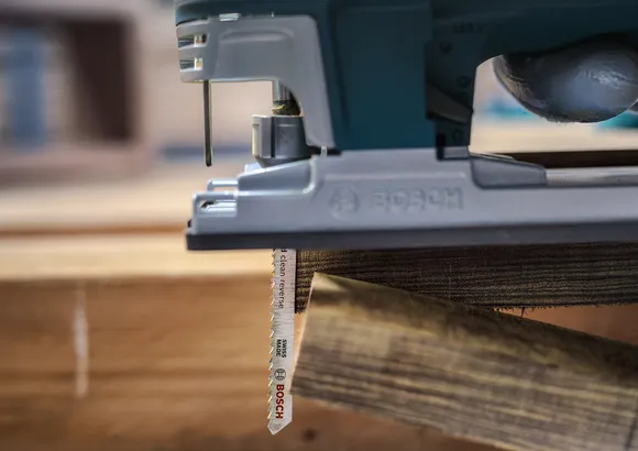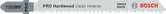 We made the PRO Hardwood clean reverse T101BRF Jigsaw Blade from Bi-Metal: it has a high-speed steel (HSS) tooth strip bonded with a high-carbon steel (HCS) body to ensure you can tackle hardwood and laminate boards for a long time. The blade has a tapered shape and fine-pitched teeth with a reverse design helping you get tear-free cuts on the top of workpieces up to 30 mm thick.