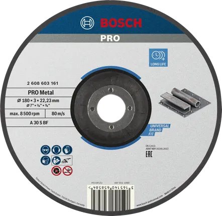 We made the durable PRO Metal Bonded Cutting Disc with premium aluminium oxide grains to make sure it cuts effectively. And combined the grains with functional fillers and embedded them in a phenol resin matrix for strength and resistance to heat. We reinforced the disc with a high-quality fibreglass net for safer and more stable performance.