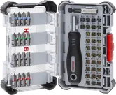 | 2 607 012 080 | 25 mm bits: PH1 (2x); PH2 (4x); PH3 (2x); PZ1 (2x); PZ2 (4x); PZ3 (2x); T10; T15 (2x); T20 (3x); T25 (3x); T27; T30; T40; T10H; T15H; T20H (2x); T25H (2x); T27H; T30H; T40H; H3; H4 (2x); H5 (2x); H6; SL3; SL4; SL5 (2x); SL6. 55 mm bitshållare: Standardbitshållare skruvmejselhandtag: 125 mm skruvmejselhandtag. | 50 St. | Hitta en lokal återförsäljare | |