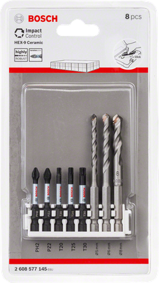 Hex-9 Ceramic 5/6/8 mm, Impact Power-bits 50 mm PH2, PZ2, T20, T25, T30 2 608 577 145
