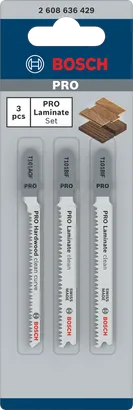 PRO Laminate-satsen innehåller sticksågblad av bimetall. Dess tandrad av snabbstål (HSS) är fäst på en stomme av stål med hög kolhalt (HCS. för styrka och flexibilitet. De hjälper dig att enkelt få raka och böjda snitt i laminatmaterial.