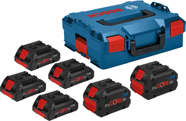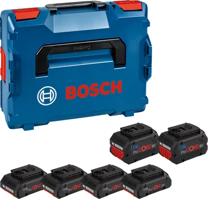 Detta är kombinationen av det kompakta och lätta ProCORE18V 4.0Ah och det högpresterande ProCORE18V 8.0Ah för upp till 1 800 W kabeldriven effekt. Vår senaste cellteknik med 21700 celler och vår intelligenta batterihantering garanterar 87 % mer effekt jämfört med ett vanligt batteri och COOLPACK 2.0-tekniken hos detta batteri med sin överlägsna värmehantering garanterar längre livslängd och drifttid. ProCORE18V 4.0Ah och 8.0Ah-batterier är utrustade med en högupplöst laddningsindikator med fem LED-lampor. Alla våra batterier är kompatibla med nya och befintliga Bosch Professional-verktyg i samma spänningsklass sedan 2008.