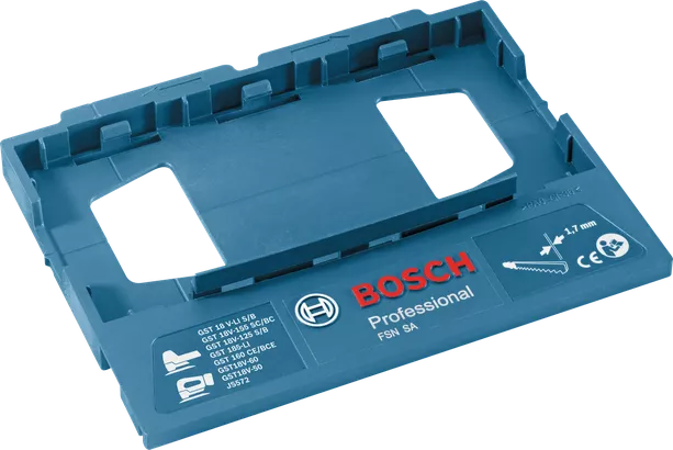 FSN SA Professional adapter ger styrda, raka sågningar för sticksågar på styrskenor. Sticksågar ansluts och lossas verktygsfritt från styrskenor, för enkelt och tidsbesparande arbete. Denna adapter är lämplig för många olika sticksåg/styrskenskombinationer med Bosch FSN styrskenor, liksom styrskenssystem från Mafell och Festool, och möjliggör raka sågningar med perfekt precision. Adaptern kan användas tillsammans med sticksågarna GST 160 Professional, GST 140 Professional, GST 18V-LI Professional, GST 18V-LI S Professional, GST 18V-LI B Professional, GST 18V-155 Professional och GST 18V-125 Professional.