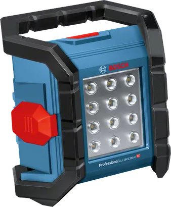 GLI 18V-1200 C Professional är den mest kompakta och robusta strålkastaren i 18V-klassen från Bosch. Den har 12 kraftfulla LED-lampor som kan leverera upp till 1 200 lumen för utmärkt belysning. Strålkastaren är stänk- och dammskyddad tack vare ett IP64-klassat robust batterilock. Strålkastaren kontrolleras bekvämt via smarttelefon, vilket möjliggör snabba och enkla fjärrjusteringar. Den har två inställningar för ljusstyrka, fem flexibla stående positioner och ett stativ med 1/4"-gänga så att den snabbt kan anpassas till alla arbetssituationer. Denna strålkastare är utmärkt för belysning av hela arbetsutrymmen under en hel arbetsdag. Den är kompatibel med alla Bosch Professional 18 V-batterier* (Professional 18V System). * Batterilocket stängs inte helt när ProCORE18V 12.0Ah-batteriet används. Även kompatibel med AMPShare, batterisamarbetet mellan flera märken.