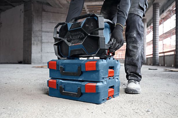Byggradion är IP54-skyddad när den går på batteri och alla öppningar är stängda. Den har en stor display och användargränssnitt, och du kan placera din telefon i radions handtag. Bonus: den har till och med en flasköppnare.