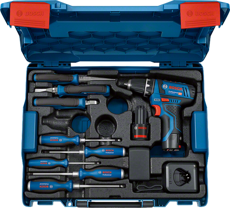 Denna kombination av den sladdlösa GSR 12V-15 Professional och 8 handverktyg från Bosch Professional levererar maximal mobilitet. Den tvåväxlade GSR 12V-15 levererar kraftfull borrning och skruvdragning samtidigt som den kompakta utformningen gör dem lätta att hantera. Integrerat Bosch Electronic Cell Protection skyddar batteriet mot överbelastning, överhettning och djupurladdning. Borrskruvdragaren är kompatibel med alla batterier och laddare i Bosch Professional 12V System. Satsen omfattar 8 handverktyg från Bosch Professional för de vanligaste uppgifterna: 5 skruvmejslar, kombitång, rak spetstång och en sidavbitare. För säker transport och en snabb översikt har L-BOXX 102 en förbättrad förvarings- och transportlösning helt i linje med Bosch Mobility System.