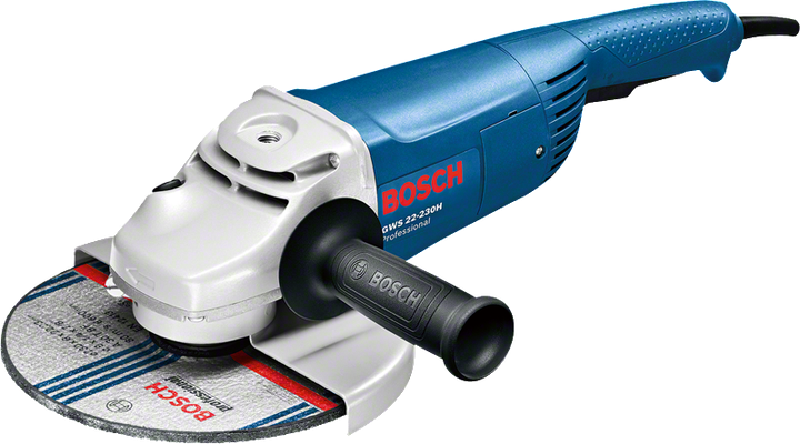 GWS 22-230 H Professional kabeldriven, stor vinkelslip ger den mest effektiva prestandan för många typer av kapning och slipning inom 2 200 W-klassen. Dess 2 200 W-motor ger högeffektiva resultat för allmänt arbete. Användarskyddet ökas tack vare slipens PROtection-brytare. Dessutom möjliggör dess kompakta, ergonomiska hölje bekväm hantering för mångsidig användning. Detta verktyg är avsett för kapning och slipning av metall, kakel och tegel. Den är kompatibel med dammtillbehöret GDE 230 FC-S Professional och Bosch Click & Clean dammutsugssystem.