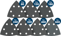 Brusni papir PRO F355, 93 x 93 mm, G10 x 80/10 x 120/10 x 180/5 x 240/5 x 320/5 x 400/5 x 600, 50 kosov