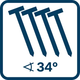 Ima stikalo za vklop z eno roko, uporabniški vmesnik z opozorilom o potrebnem vzdrževanju, načinom za zabijanje posameznih žebljev in kontaktnim načinom proženja, element za preprosto brezstopenjsko nastavitev globine, zaklep sprožitve v prazno, dvojno LED-svetilko, široko vidno polje za nadzor nad sprožilno konico in sistem za odstranjevanje zataknjenih predmetov brez orodja. Uporabi naslednje žeblje: 32–64 mm, 1,8 mm in kot 34°.