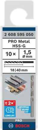 Sveder standardne dolžine PRO Metal HSS-G, 1,5 x 18 x 40 mm, 10 kosov