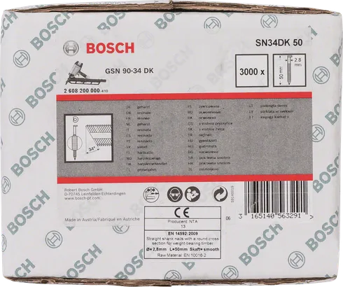 - Žeblji v traku z D-glavo pod kotom 34° za Boscheve pnevmatske zabijalnike žebljev za dela v notranjosti