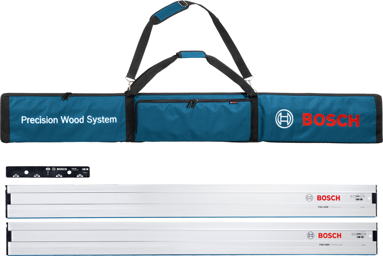 - Our most popular guide rail kit, containing the most frequent combinations of lengths needed. Anti-splinter guard for clean cut edges and adhesive tapes for non-slip handling when cutting to length and plunge cutting.