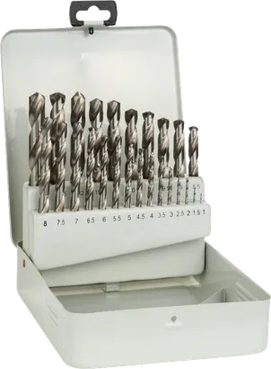 طقم رؤوس ثقب المعادن من 25 قطعَة HSS-G، DIN 338، 135 درجة في علبة معدنية 1-13 مم