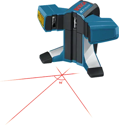 - Projette deux lignes laser perpendiculaires ainsi qu’une troisième ligne à 45° pour un alignement précis et rapide des carreaux, au sol ou au mur