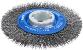 Дискову щітку PRO Metal clean виготовлено з високоякісного хвилястого дроту, що гарантує ідеальну обробку невеликих металевих поверхонь, кромок і пазів. Вона допоможе вам позбутися іржі, старої фарби й знебарвлення зварних швів. Цю щітку також можна використовувати для чорнової обробки й матування. Дискова щітка – це довговічний інструмент, який стане в пригоді в будь-якому слюсарному цеху.
