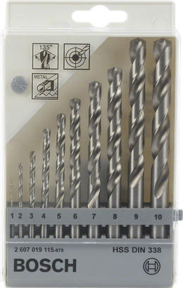 Juego de brocas metálicas HSS-G, DIN 338, 1-10 mm, 10 piezas 2 607 019 115