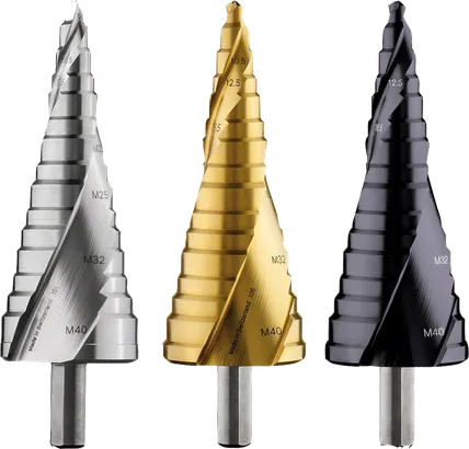 - La broca escalonada de HSS perfora con suavidad en varios diámetros con una sola broca