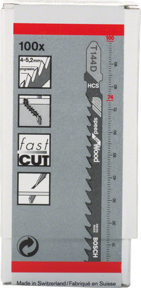 - La hoja de sierra de calar T 144 D Speed for Wood proporciona cortes rectos y rápidos en madera