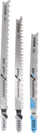 Tough saw blade sets for powerful and rapid cutting. Using saw blades is convenient - until you hit a metal nail or screw. Bosch jigsaw blade sets contain high-powered, hard-hitting blades that pierce through any metals when cutting. The hard carbide teeth are exceptionally durable, maintaining the accessory’s high-quality performance for longer. This means that you can finish your cutting jobs quicker and easier, whatever the material. Plastics, wood, metals, brick and soft tiles can all be cut through with reduced physical effort, while your saw blade accessories kit remains intact.